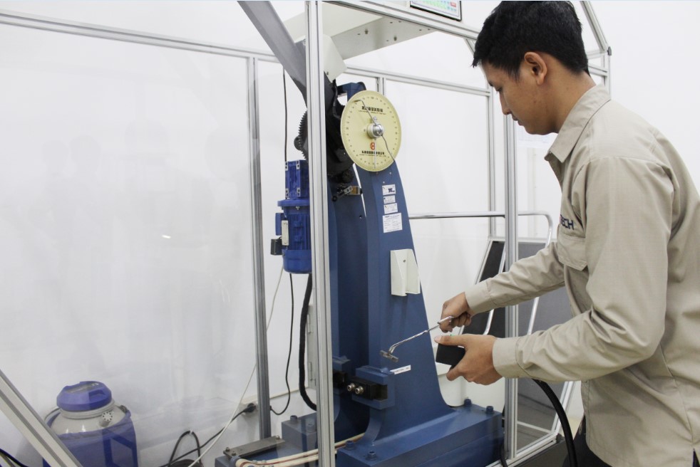 Laboratorium Uji Material, PT Detech menggunakan Metode Charpy Impact Test dengan kapasitas pendulum yang mampu membaca energi hinga 300 Joule.