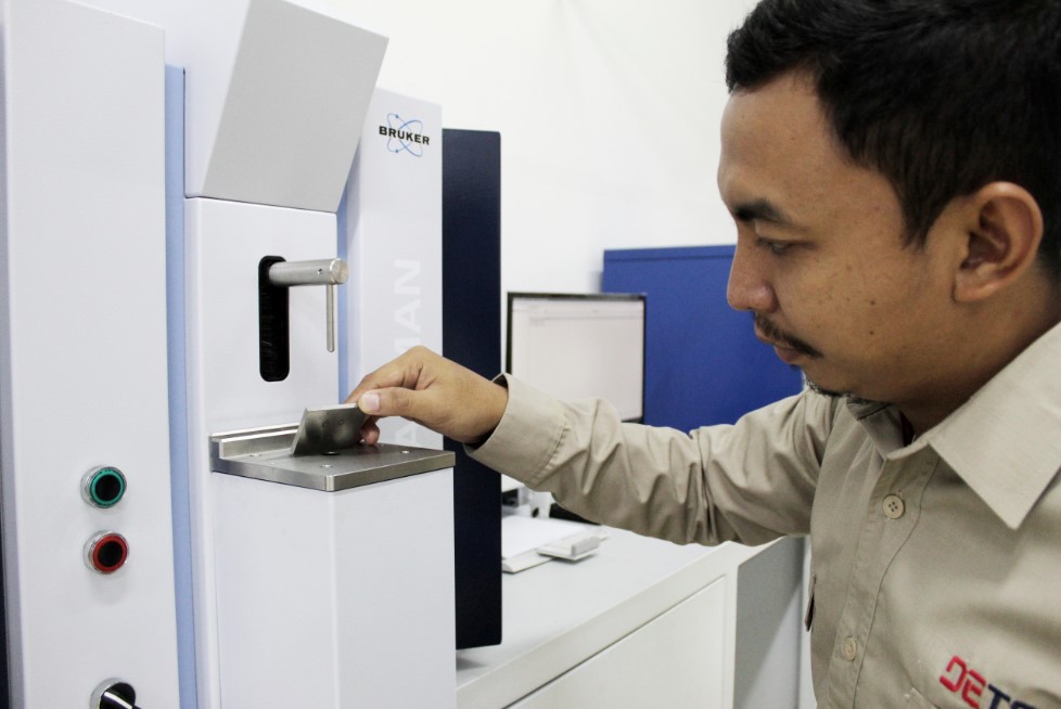 Optical Emission Spectrocopy yang digunakan Laboratorium PT Detech memiliki kemampuan untuk menganalisa material logam dengan penyusun dasar berupa unsur Fe, Al, Cu, Ni, Ti.